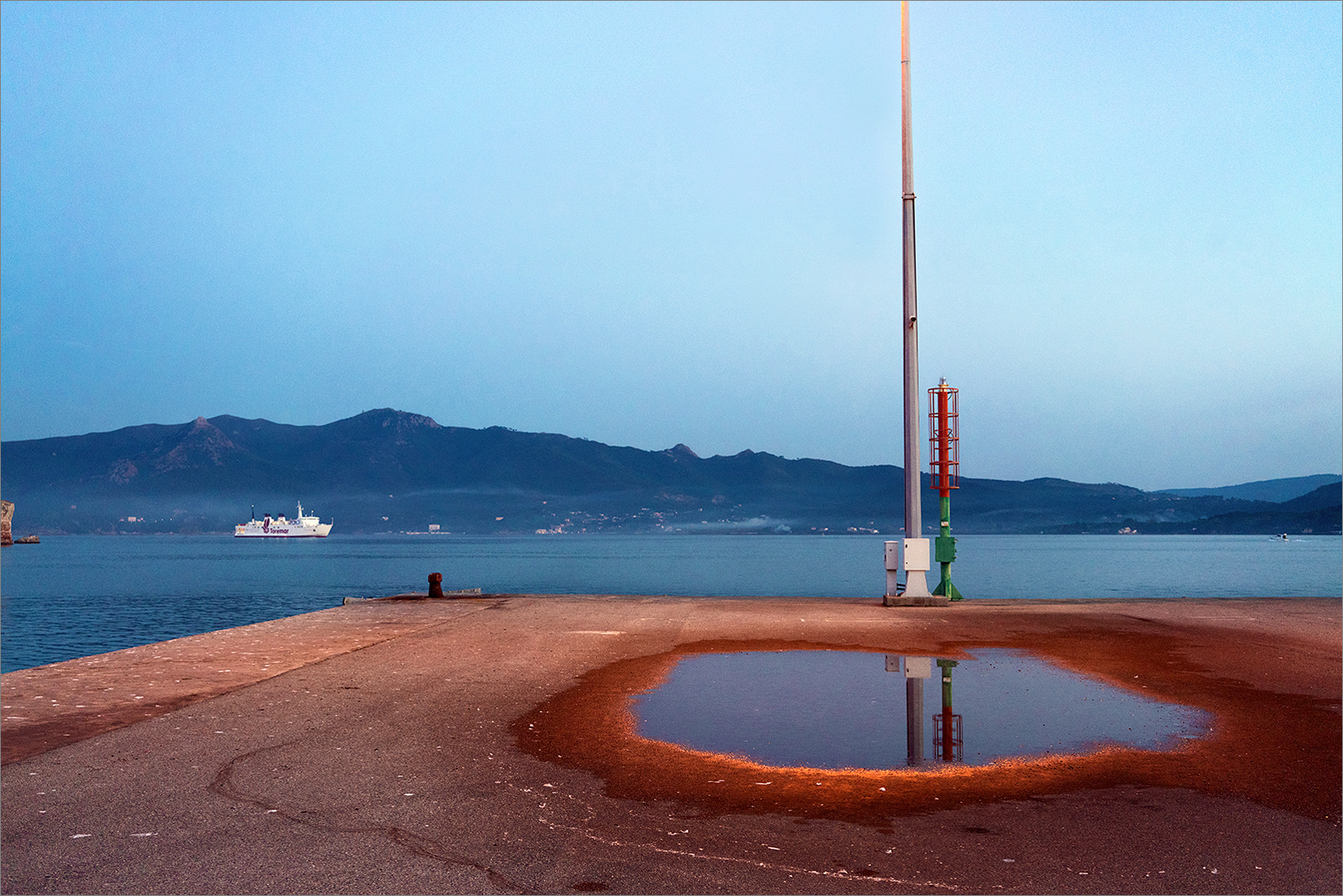 Ciao Massimo, in questo scatto ci vedo dinamicità e staticità, rappresentate dalla nave e dalla pozza che ribadisce la presenza del palo, elemento statico per definizione.