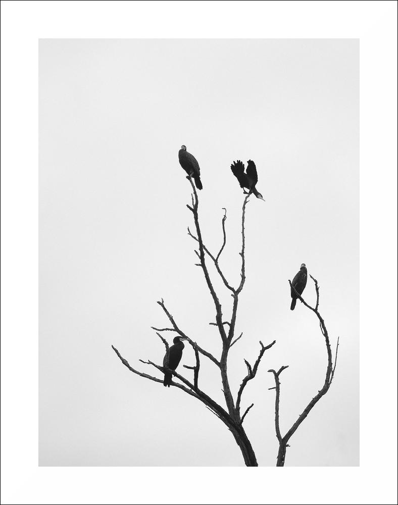 Cormorani in attesa di una nuova occasione di pasto... Grafica ed essenziale.