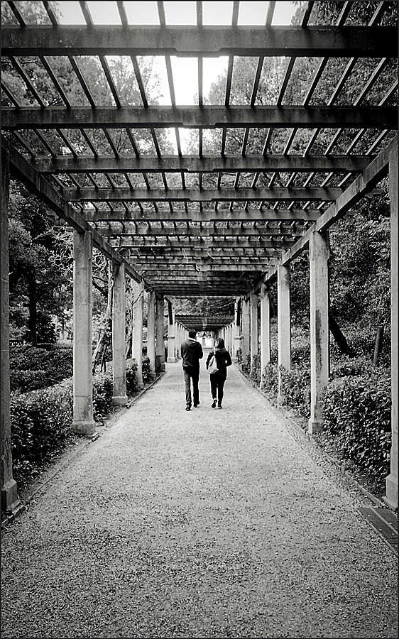 Molto bella la ripresa di questo vialetto e pergolato..dove si può fare una tranquilla passeggiata al di fuori d i tanti rumori...ottimo pdc e b/n..Ben realizzata. Sergio. Buona giornata.