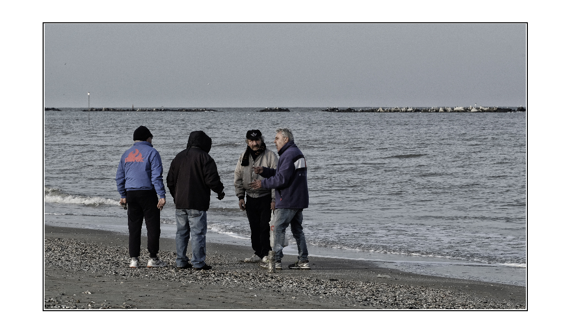 Perplesso, una figura singola mi sta benissimo sulla sinistra, un gruppetto peraltro di una certa anonimità, allora lo piazzerei al centro cercando di concentrare su di esso l'attenzione, purtroppo questa cade a vuoto perchè non si riesce a dargli un minimo di giustificazione, mai come in questo caso un titolo avrebbe aiutato ma nel complesso la trovo una immagine piuttosto anonima, lontana dal tuo standard che racconta.