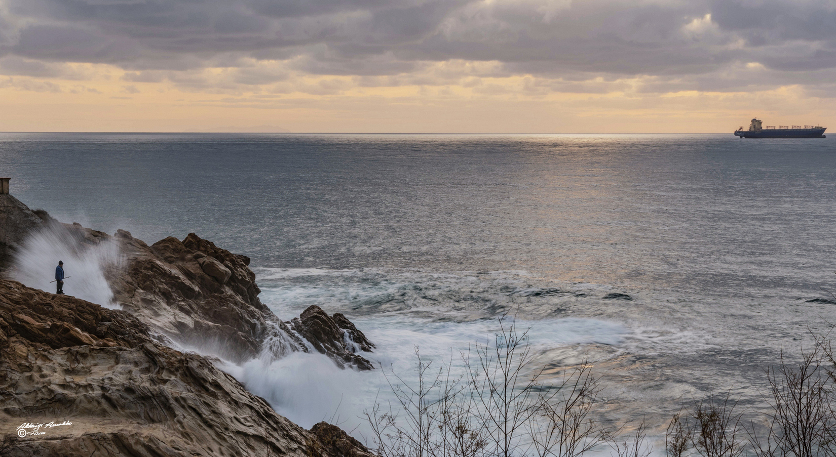 Mi piace per la scena che per tre quarti gode di una pace unica e, nell'angolo in basso, a totale contrasto, sprigiona una potenza inaspettata. Poi c'è il consiglio di Vittorione, sempre molto attento e puntuale, che la immagina concentrando il tutto in quello schiaffo della natura vicino al pescatore, rafforzandone l'intensità con un bellissimo B/N. ....... che dire due mondi e due modi di interpretare la stessa immagine in maniera completamente diversa.... è questa la vera forza della fotografia, l'emozione di interpretarla ciascuno secondo il proprio pensiero e la propria sensibilità.