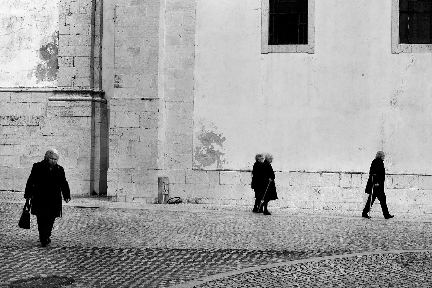 Se devo essere sincero la scena non mi dice molto... L'elemento propriamente street, che io ho individuato nei bastoni cui si appoggiano le signore sulla destra, è troppo diluito e fa fatica ad emergere come soggetto. Anche passando oltre, non mi convincono le due signore "sovrapposte" e poco leggibili.