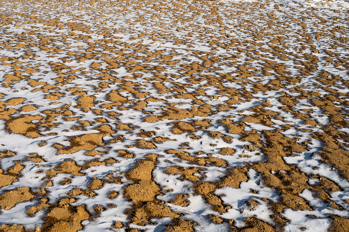 zolle di terra e una spruzzata di neve formano questo bel quadro astratto, mi piace