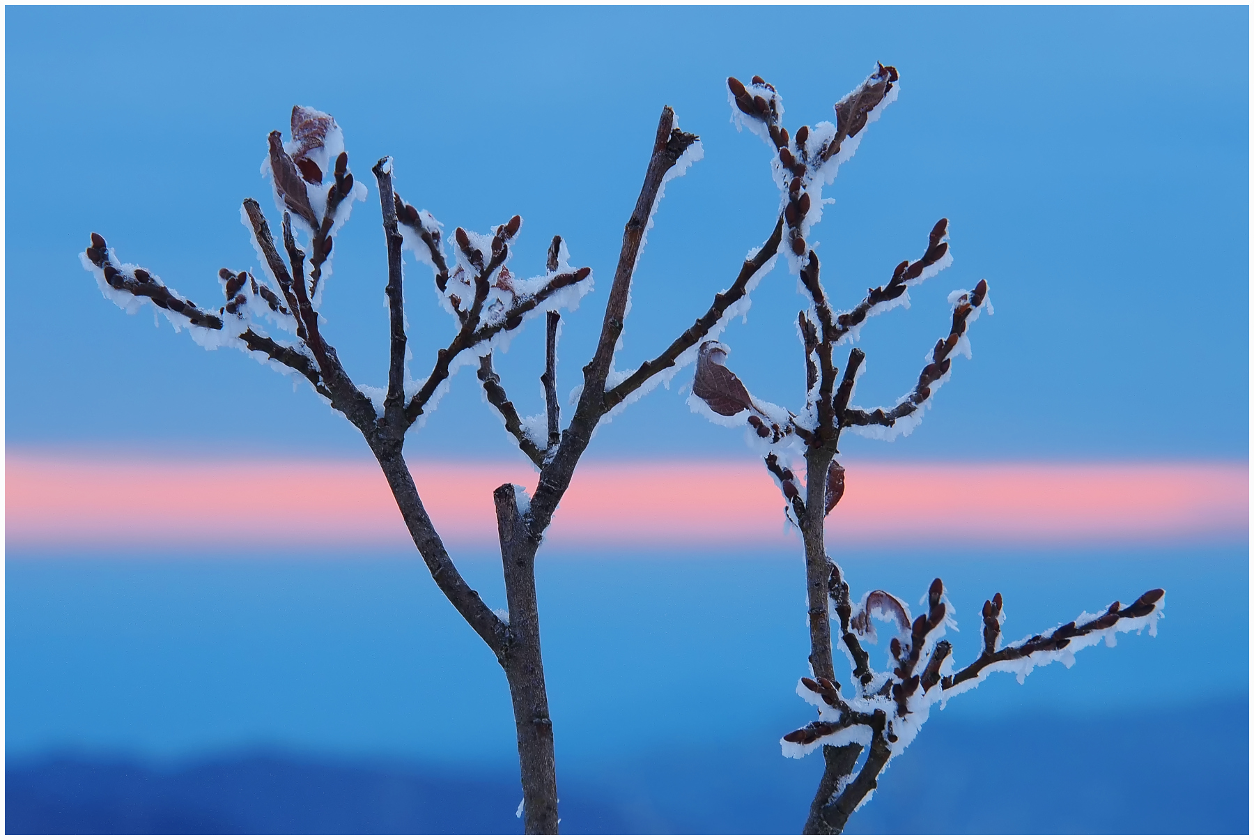 Al gelido abbraccio dell'inverno, si contrappone uno sfondo dai toni setosi e caldi.