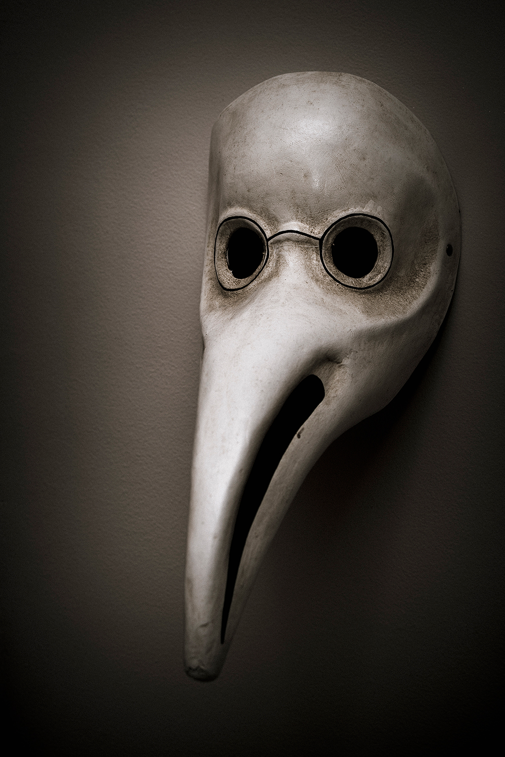 Inquietante, e tu l'hai ripresa in modo da esaltarne il fascino oscuro, gestione della luce molto buono mentre avrei preferito un diaframma più chiuso per aver nitido anche la parte del muso/becco/bocca che soffre un po della pdc mancante...vincente la vignettatura.