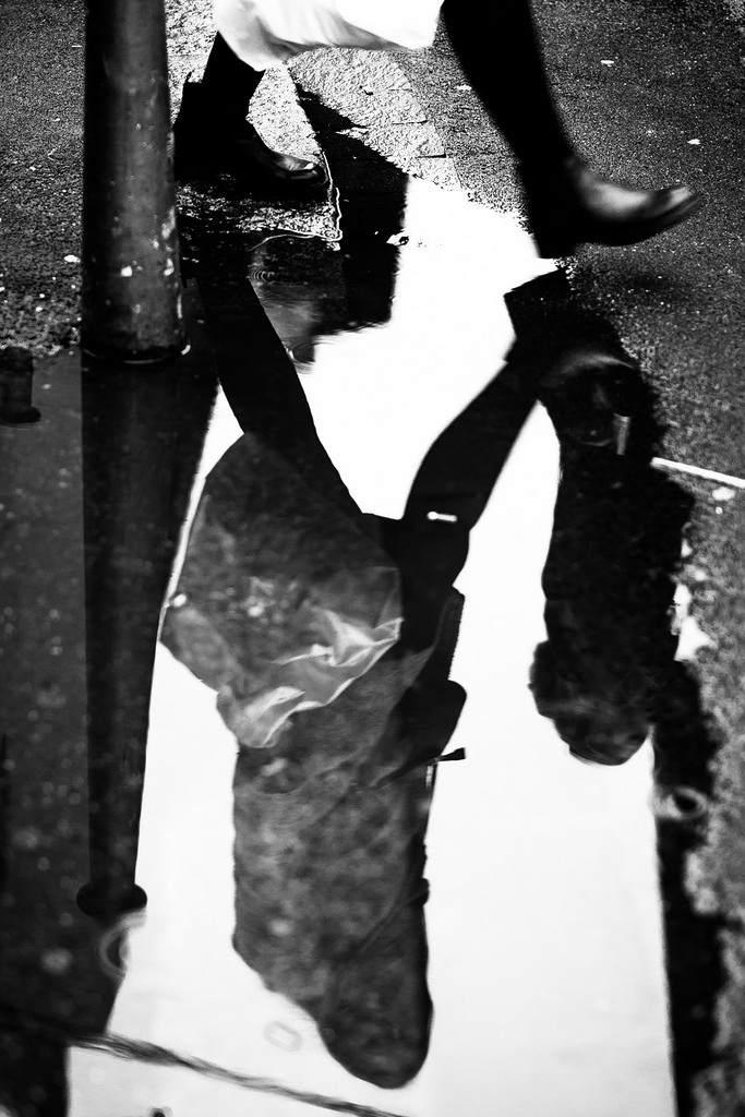 Adesso non è che dopo Cartier-Bresson non si possa più fotografare un "passo" (che neanche di un "salto" si tratta) riflesso in una pozzanghera senza fare riferimento a cotanto modello ispiratore.
