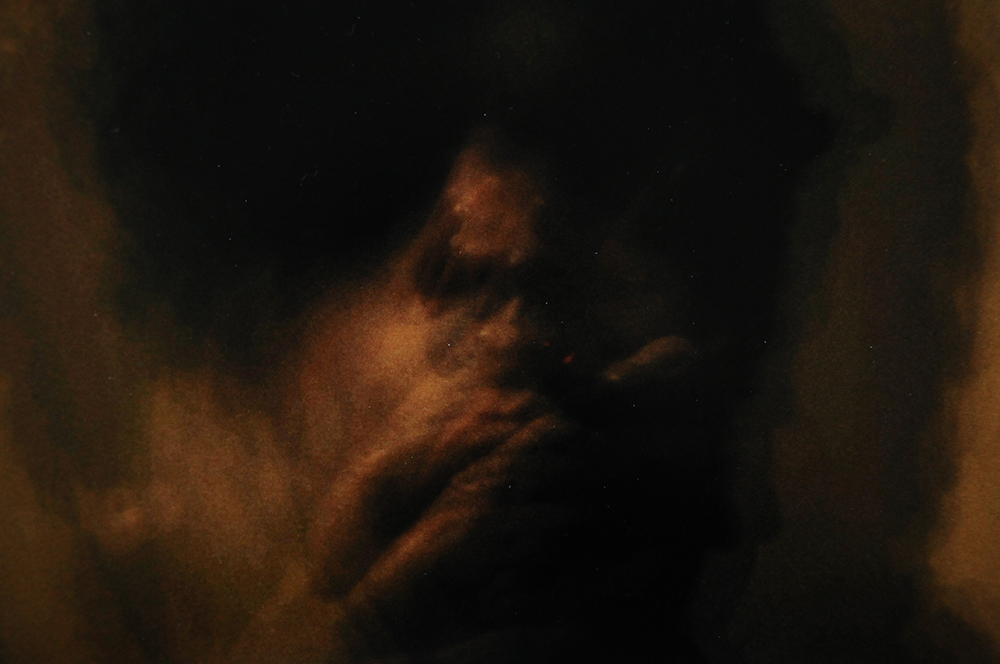 Mi viene naturale partire, proseguire dal tuo precedente lavoro che hai qui proposto, “L’informe”, senza la pretesa di poter dire che sono legati dal lato del significato ma puramente dal lato grafico. li vedo molto simili, sebbene uno sia in B&N e l’altro a colori. Ci trovo la stessa veste grafica delle immagini con l’uso di una veste grafica morbida e granulosa. Quanto è profondamente diverso e balza da subito all’occhio riguarda la scurezza estrema di questo lavoro, con le figure su uno sfondo scurissimo mente in “L’informe” gli sfondi sono sempre bianchi. Questo crea una sensazione di pesantezza ed oppressione e lascia intuire il diverso e quasi antitetico spirito che anima i due lavori. Come di consueto la grafica riconduce immancabilmente a significati che sono oltra una semplice veste e rimanda al concettualismo del lavoro. in questo caso cupo non si rifà solo alla veste grafica ma veicola l’atmosfera che permea il lavoro. Mano mano che mi soffermo sulle immagini poi tendo ad associare il colore con una sorta di B&N….nel senso che il colore presente è solo una singola tonalità. Tonalità ocra scurissimo/carne. Un monocromatismo assimilabile ad un B&N, ma che unita ai toni particolarmente scuri e conferisce un’aria più cupa e pesante quasi mancasse una ventata di aria. altra caratteristica che ho notato sono gli occhi. Spesso celati nell’ombra ma quando visibili lo sono in modo quasi completo, bulbi oculari neri e resi vivi da dei riflessi luminosi che li rendono inquietanti e pervasi da una sorta di panico, quasi paura o consapevolezza della propria condizione dellla quale ci si è resi conto dopo il rendersi conto della propria condizione interna, prima della successiva accettazione dello stato delle cose e la capacità di ascoltare e capire il proprio inconscio (non è tutta farina del mio sacco….sono andato a rivedermi velocemente le idee di Lacan). Ed allora, capendo o cercando di comprendere l’idea che sottende questo portfolio, addentrandosi e facendo proprio il filo conduttore che passa attraverso il lavoro, forse acquista un significato interpretabile e comprensibile l’ultima fotografia, quella che chiude la serie. Un volto fermo e non squassato come quelli precedenti. Reso fermo e stabile dall’avere raggiunto una prima negata consapevolezza. Un volto di persona ormai matura, adulta come età. persona che si è resa conto del proprio essere e calma, ferma, con lo sguardo titubante che esprime un interrogativo; ora consapevole ma conscio di potersi perdere e portato a spegnersi e perdere ogni iniziativa…quello che potrebbe essere insito nella vita di oggi: la perdita del desiderio a fronte del soddisfare l’impulso del tutto subito che porta alla sua cancellazione.