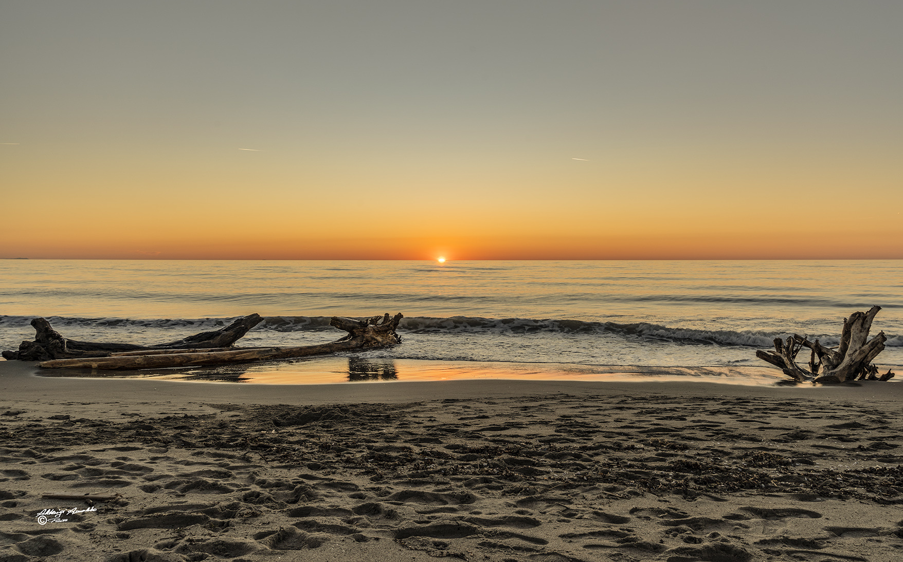 | Bruno Tortarolo ha scritto: | Orizzonte dritto e centrale con il sole fulcro dell'immagine, bella specchiatura e cromie giuste, una foto nella quale mi riconosco.