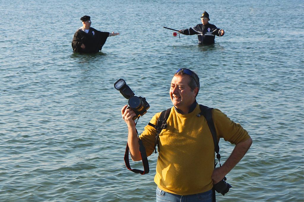 Non voglio sapere come e perchè, mi basta osservare questo fotografo che sembra rifiutarsi di fotografare quei due pazzi che gli stanno dietro.