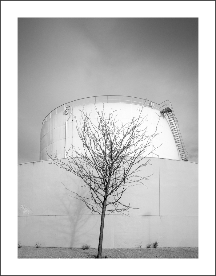 Raffinato scatto, minimale ed essenziale che contrappone un albero ormai spoglio al cemento.