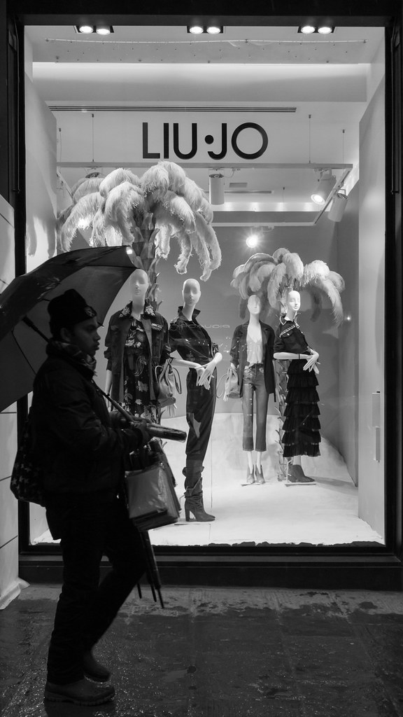 Per un attimo si sono invertiti i ruoli:non più i manichini ed i loro vestiti osservati dai passanti incuriositi ma il passante,distratto dai suoi pensieri,oggetto degli sguardi altezzosi del popolo delle vetrine.Buona gestione della non facile luce,ottima immagine. Ciao,Sergio.  _________________ Sergio Demitri https://www.flickr.com/photos/124946035@N02/ |