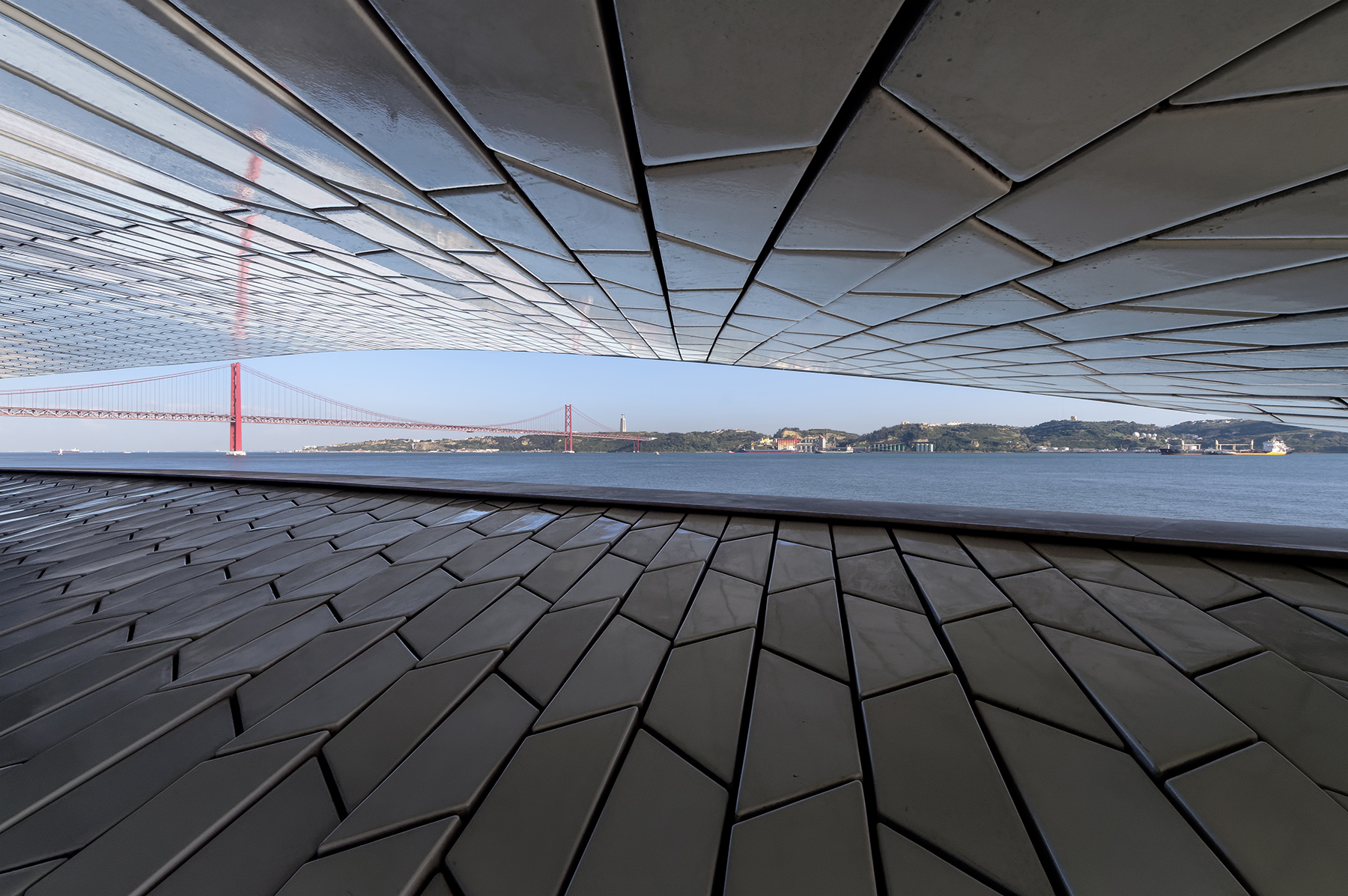 Uno scatto intrigante e ottimamente eseguito. Ripresa originale di un soggetto comunemente immortalato in altra maniera. Apprezzo alcune accortezze che rendono il tutto impeccabile, quale l’aver incluso per intero e senza “appiccicarlo alla parte superiore della struttura il pilone sinistro del ponte. buona anche la scelta di mantenere a fuoco tutto il primissimo piano.