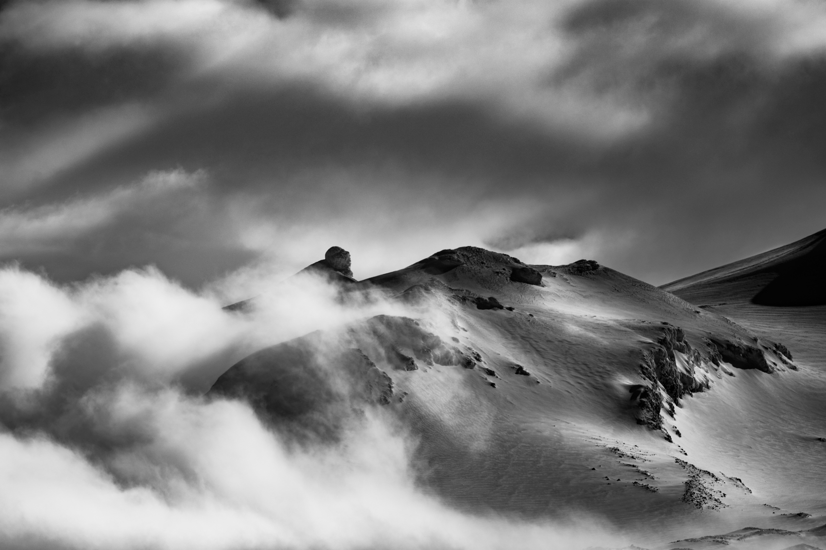 | Un movimento di nuvole e neve nel vento con alternanza di luci ed ombre che raffigura molto bene il vigore della montagna. Ottima |
