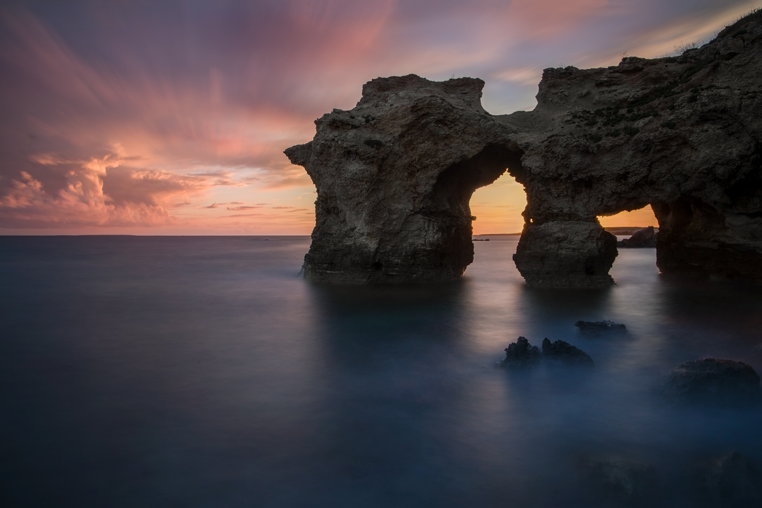 Magica...toni avvolgenti, delicatamente sfumati nelle tonalità fredde del blu e del viola, di un mare e di un cielo ugualmente morbidi, che vanno a scaldarsi nel cuore dell'immagine.Bellissimo l'arco roccioso che si fa abbracciare da questo spettacolo di colori e molto suggestivi per me anche i piccoli scogli emergenti in basso, che sembrano affacciarsi timidamente per assaporare anche loro il tramonto . Stellina. Bravo  _________________