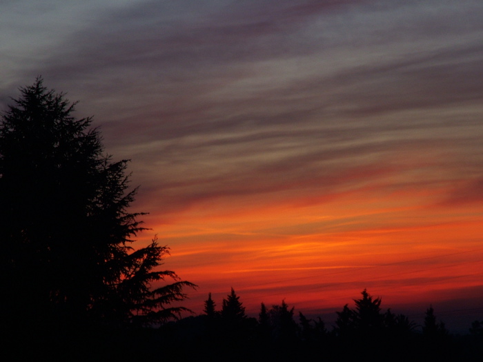 Non sarebbe neint'altro che uno dei tanti tramonti, se non fosse per quelle linee orizzontali nel cielo.