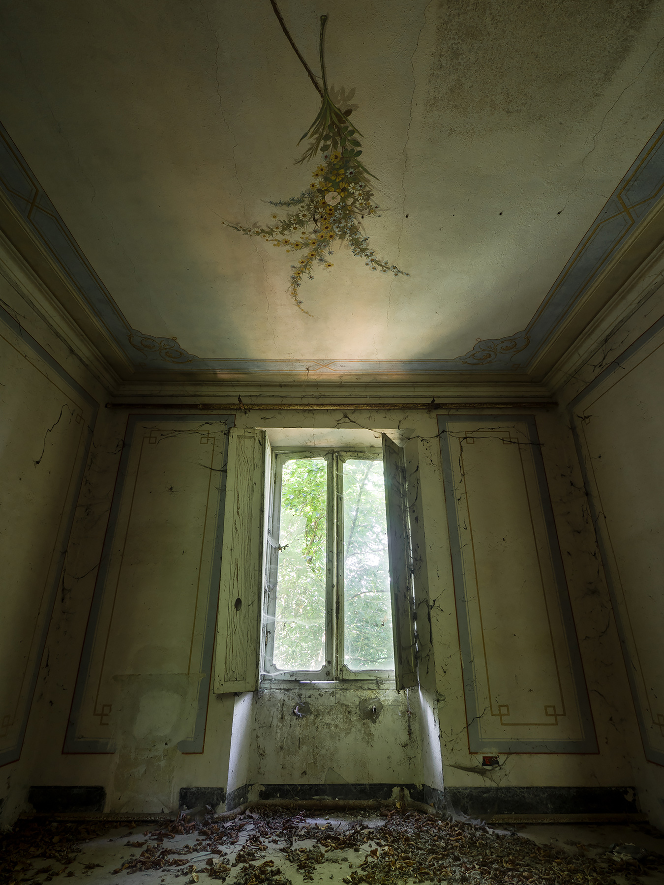 Spettacolare: le foglie sottostanti sembrano davvero essere quelle cadute dai fiori che affrescano il soffitto. Preferita.