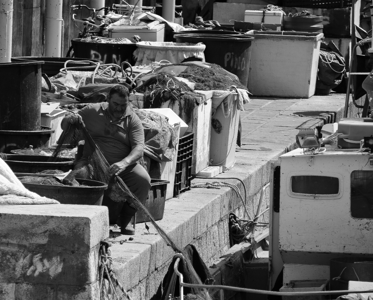 La luce inonda e accarezza tutto quello che c'è sulla banchina (anche troppo) ma non una cosa che andava valorizzata, il volto del pescatore, visto che lo scatto probabilmente è unico magari ci stava una leggera schiarita in pp.