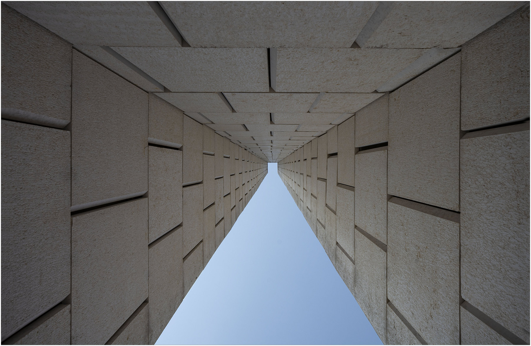 Lo vedo ruotato di 180° (qua il cielo è solo un cielo, e ci si aspetta che stia sopra) e centrato meglio nella fuga prospettica (con un po' di fatica in PS si riporta in asse). La luce non è granché, probabilmente lavorando un buon BN si poteva tirare fuori qualcosa di più appagante.