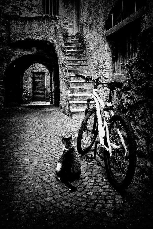 Bellissima composizione, bel BN contrastato e valorizzato dalla vignettatura.