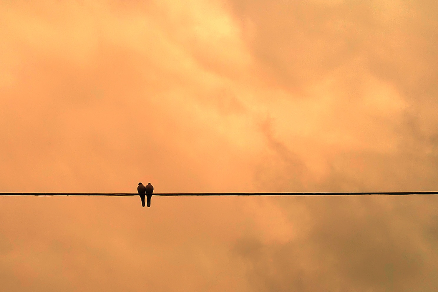 un'immagine poetica e romantica con la coppia immersa nel rosa del cielo, mi piace