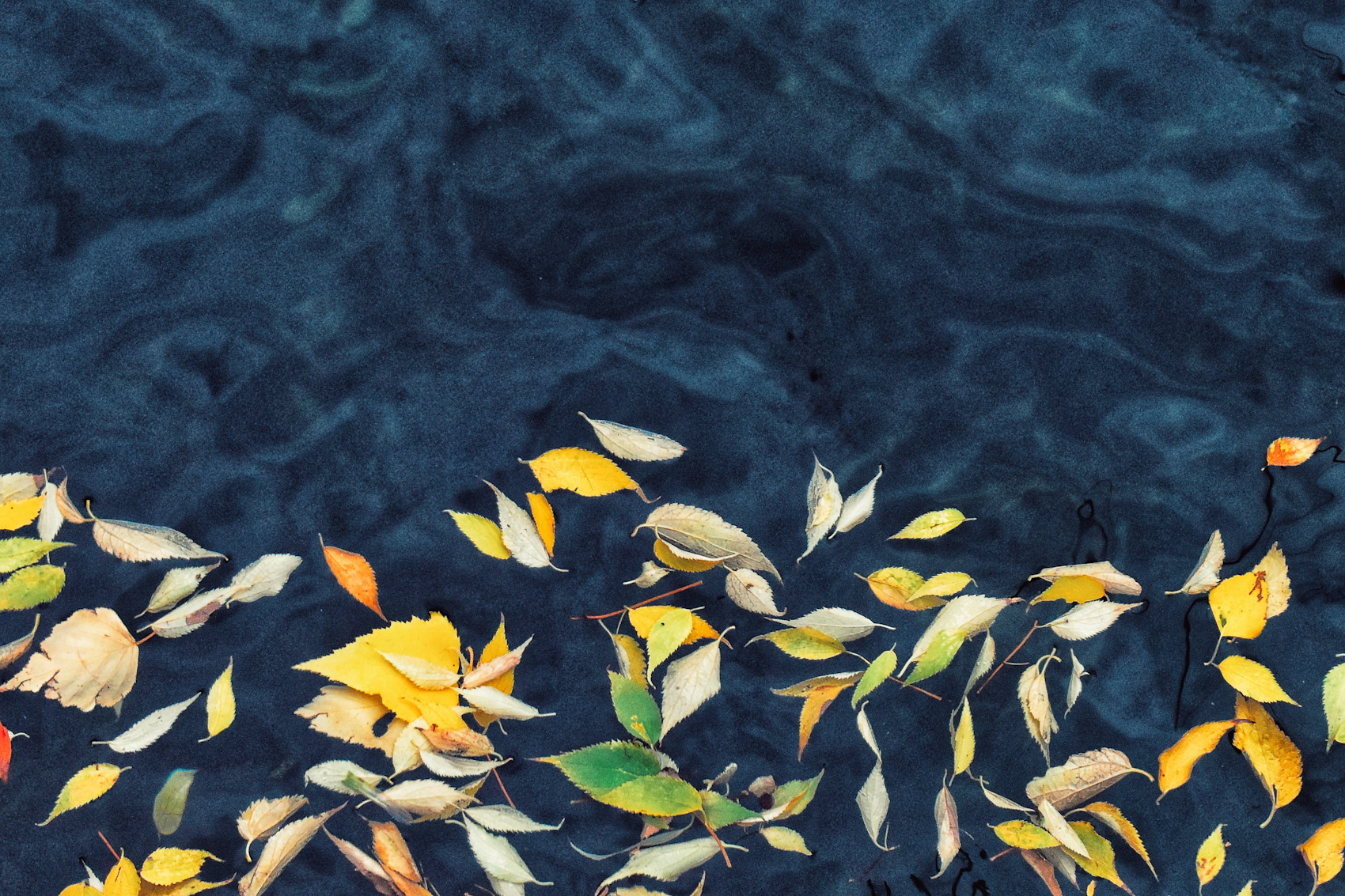 piacciono molto anche a me queste foglie colorate che galleggiano allegre sullo sfondo scuro. Molto bella