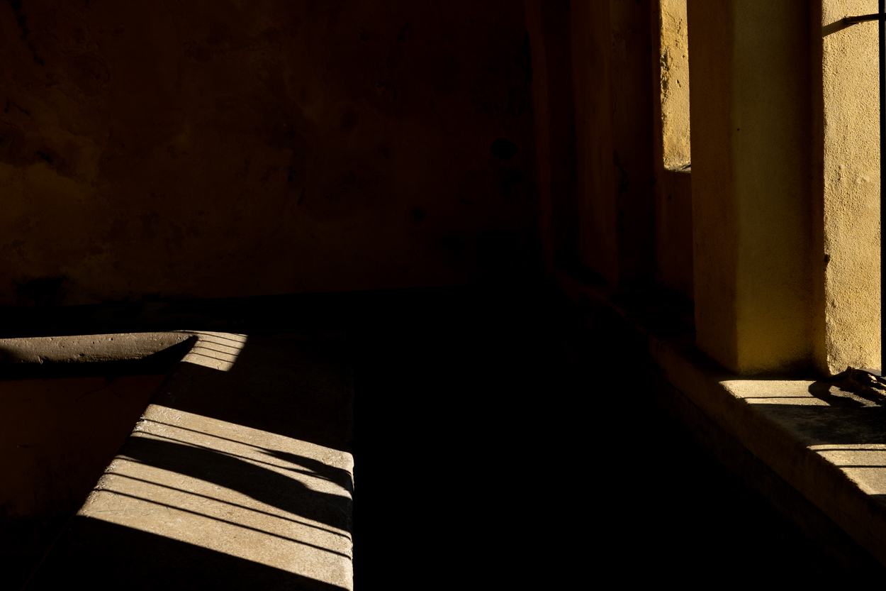 Arnaldo, è un antico lavatoio e, dalla finestra laterale ho visto proiettata questa ombra di una statua; una figura china e mani giunte, raccolta in preghiera. Ne ho voluto raccogliere solo la parte astratta