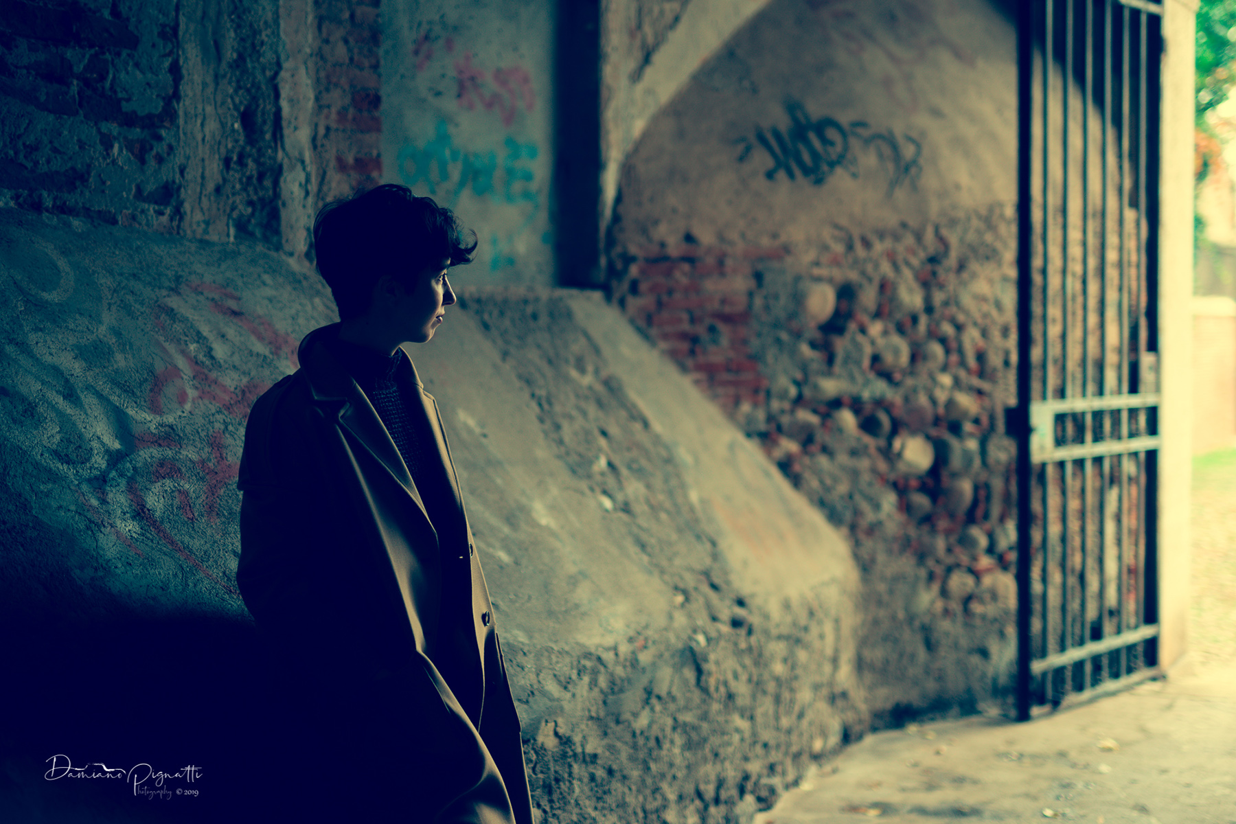 Questa modella ha una innata capacità recitativa... sta ferma in quel sottopassaggio freddo ombroso e umido e osserva l'entrata ... con un accenno di sorriso che vuol dire che ha visto qualcosa ... qualcuno .. o forse lo immagina ?