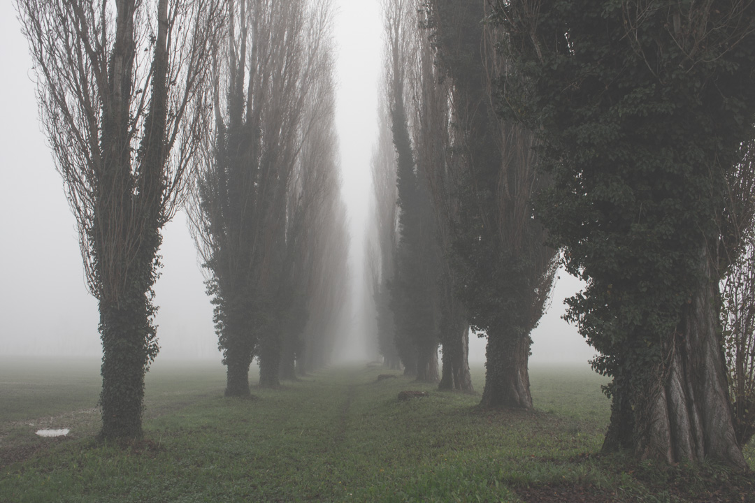 Mi piace questo viale di campagna alberato ed avvolto nella nebbia..