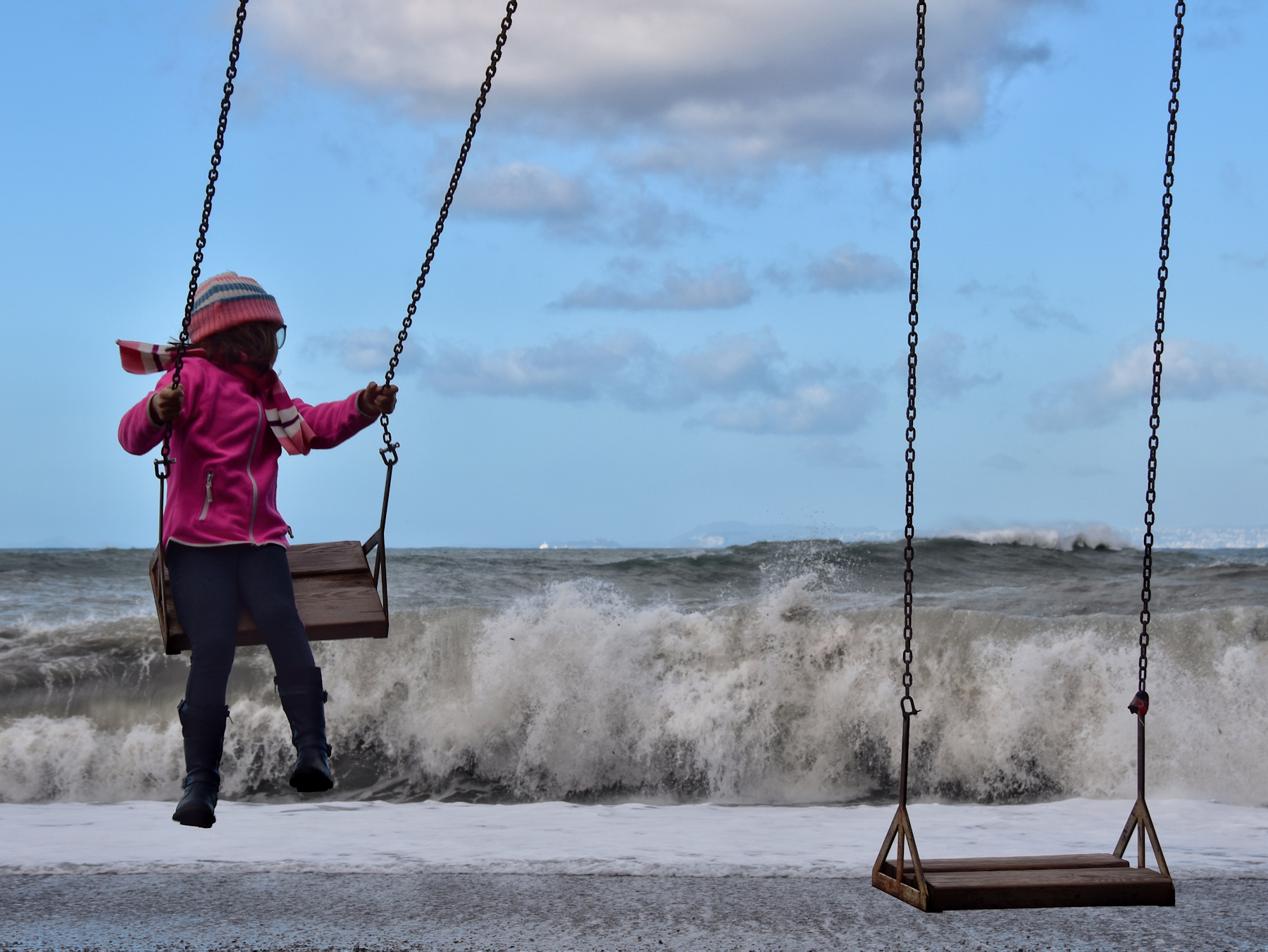 | Mi piace molto, anche il contrasto tra l'altalena, un gioco tranquillo, e l'impeto del mare.