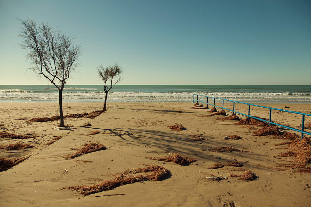 La cosa che più incuriosisce a primo impatto di questa immagine sono gli alberi spogli così vicini alla riva del mare.