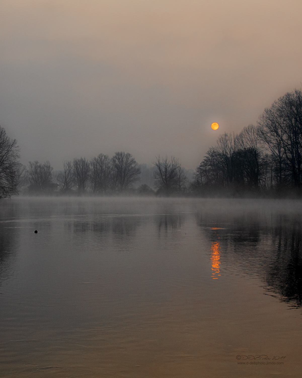 Fredda atmosfera ma riscaldata dal piccolo sole che specchia sull'acqua. Bello scatto