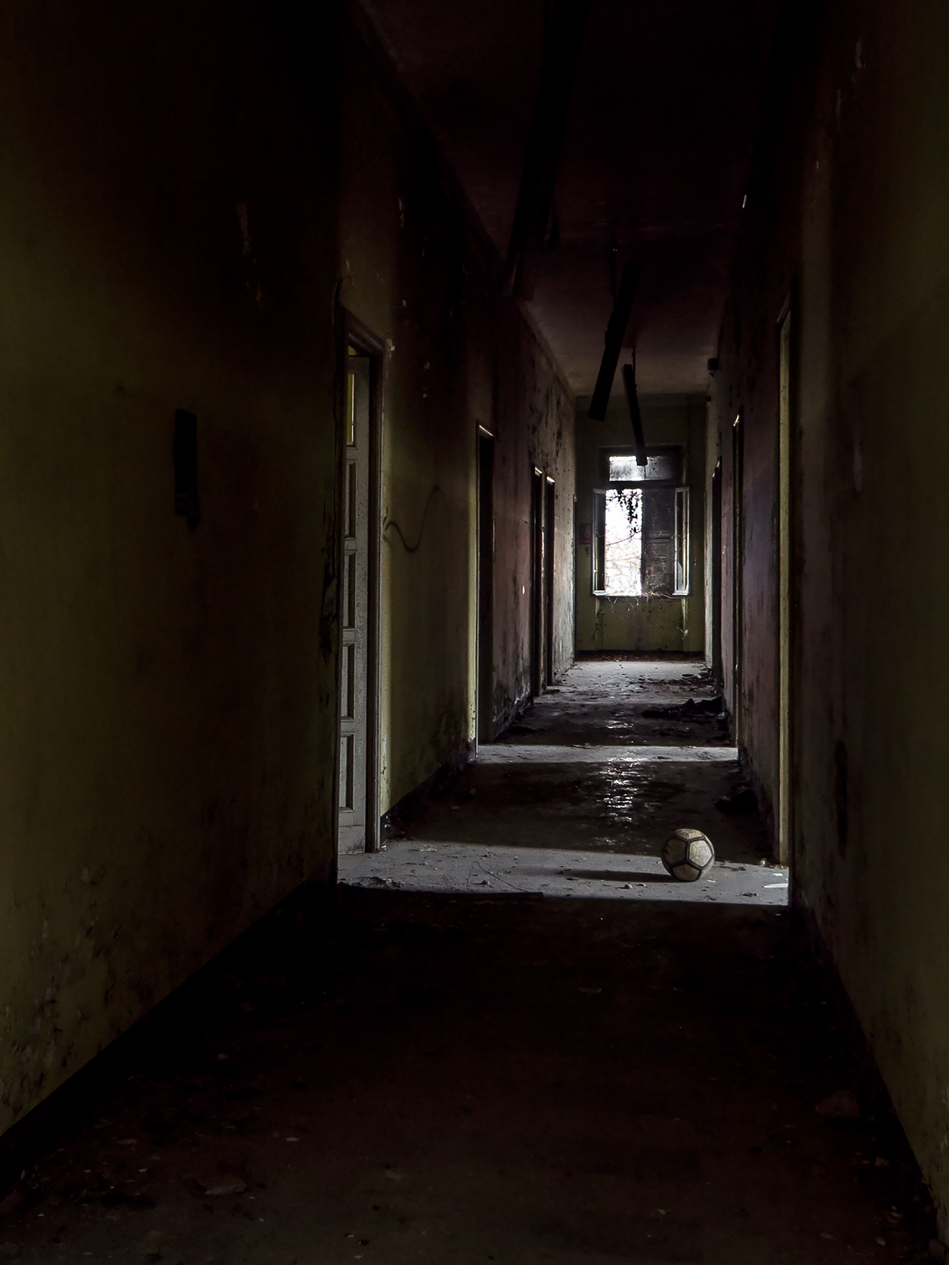 A mio gusto, hai fatto bene ad appoggiarti a destra, in modo di rendere visibili le porte sull'altro lato; il pallone completa un'ottima scena.