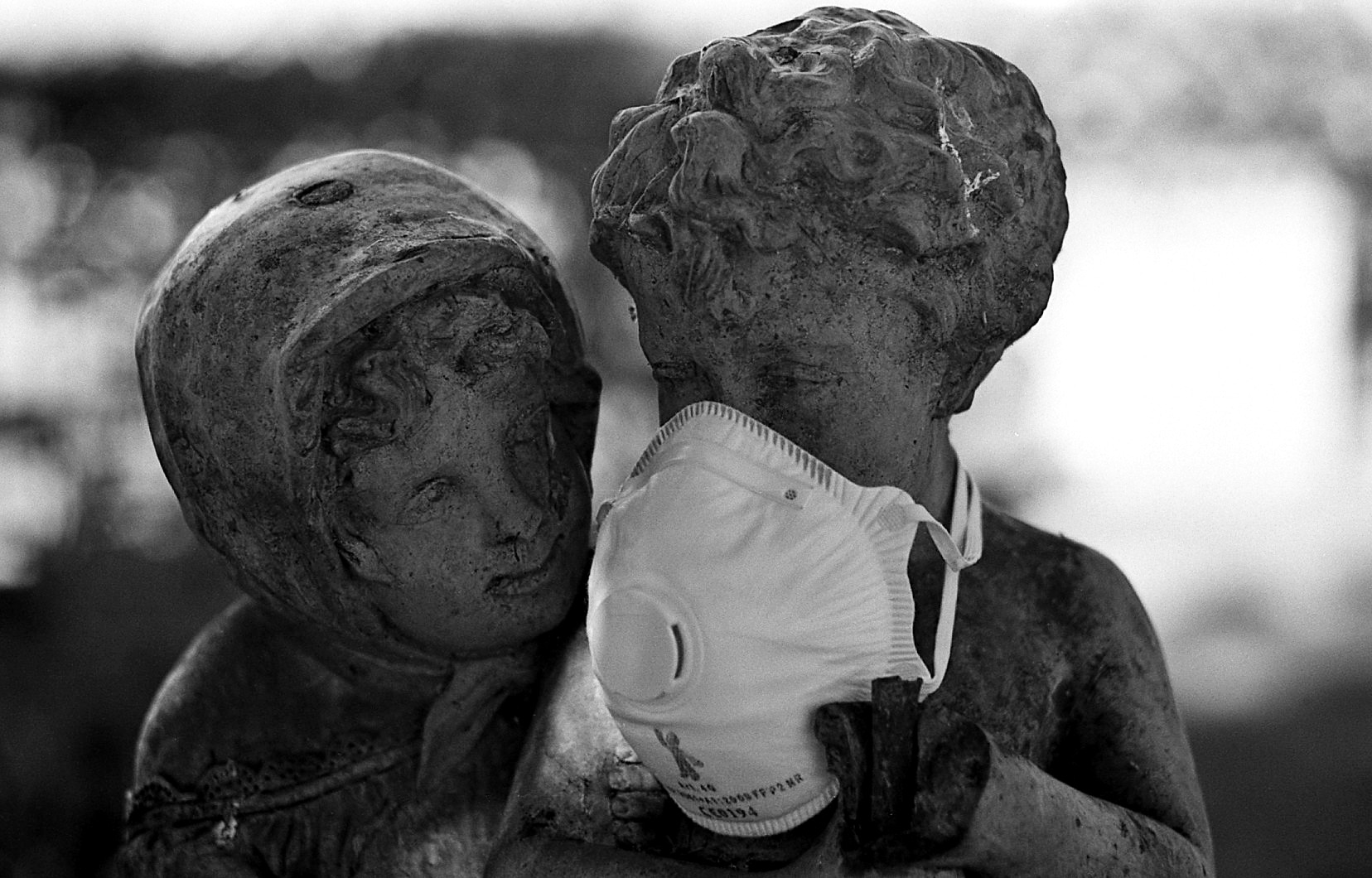 Le due statue trasmettono tenerezza e, in particolar modo quella senza mascherina, parte voglia assistere l'altra. Ottima, nella sua drammaticità.