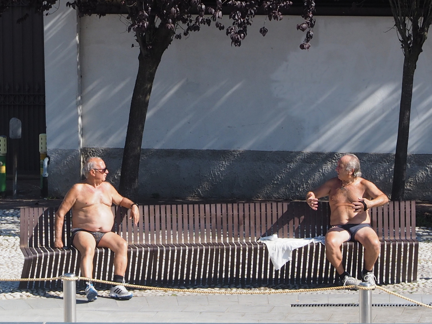 Un curioso dialogo a distanza, in cui la "mise" dei due signori e la posizione agli estremi fa la differenza.