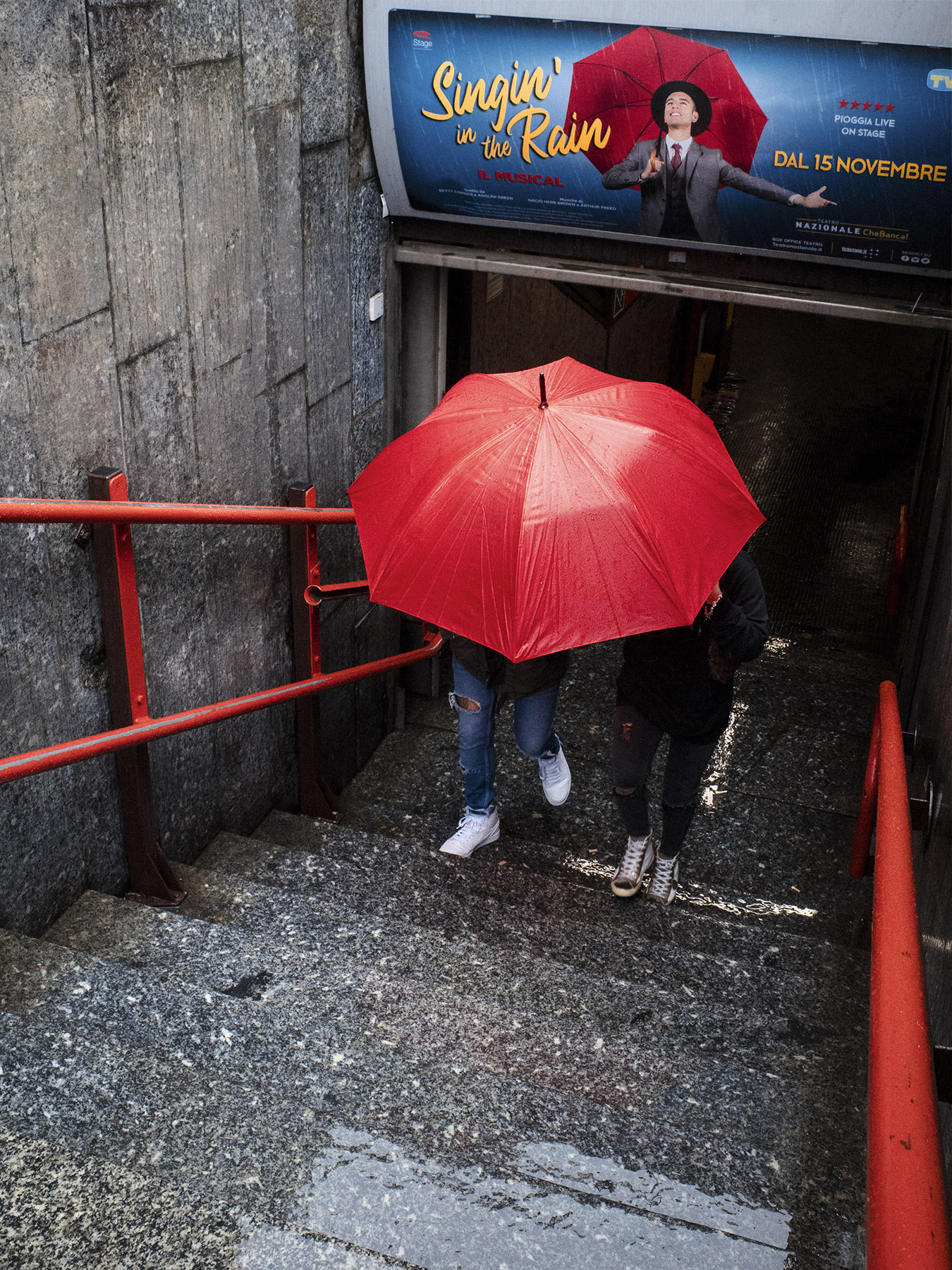 Gran scatto….direi "carpe diem" ma mi viene da chiederti… ti sei appostato in attesa di un passaggio con ombrello rosso o appena visto hai colto l'attimo…