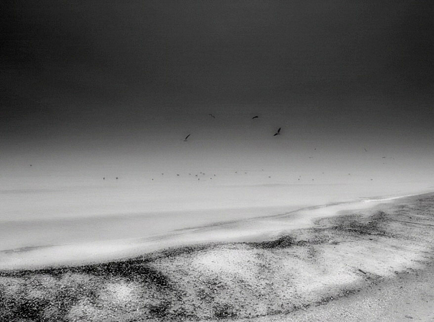 Un paesaggio che acquista fascino dal suo essere astratto e privo di riferimenti.. si lascia intuire ma non del tutto capire...questa poca definizione alla fine da possibile difetto ,diviene il punto forte dello scatto.. il viraggio non so..lo trovo spento e un po piatto,di sicuro ci si puo giocare ancora. Gli uccelli in volo mi pare presentino degli aloni intorno. È un immagine che non riesce a convincermi del tutto ma che trovo abbia comunque il suo potenziale e il suo perché.  _________________