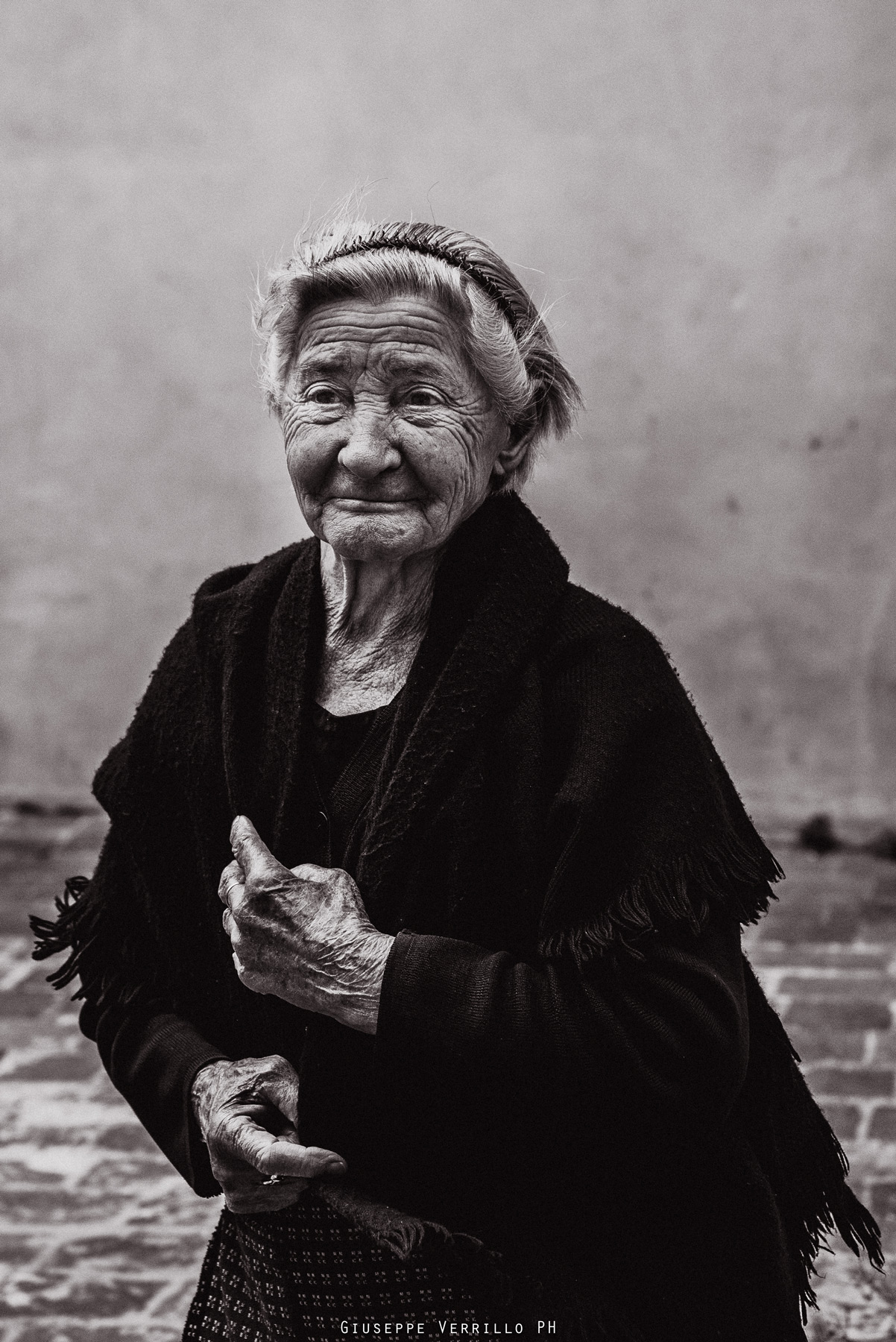 Salve a tutti. Grazie per i vostri preziosi commenti. Siete riusciti a cogliere quello che volevo comunicare. Questa foto nasce da un progetto intrapreso con un amico. Girare i 52 comuni della provincia di Foggia che comprende borghi medievali con secoli e secoli di storia: Ogni qualvolta incontriamo un anziano del posto non perdiamo l'occasione di fermarci a fare due chiacchiere ed ascoltare storie simpatiche. Questa signora con i suoi 80 anni ci parlava degli orari della chiesa che è giusto difronte casa sua, e alla richiesta di posare per una foto non perdeva tempo a tirare giù lo scialle nero ( che solitamente portano le donne del sud, a volte anche per lutto ) e si metteva in posa con un imbarazzo velato. _________________ La fotografia è un esercizio d’osservazione. Isabel Allende