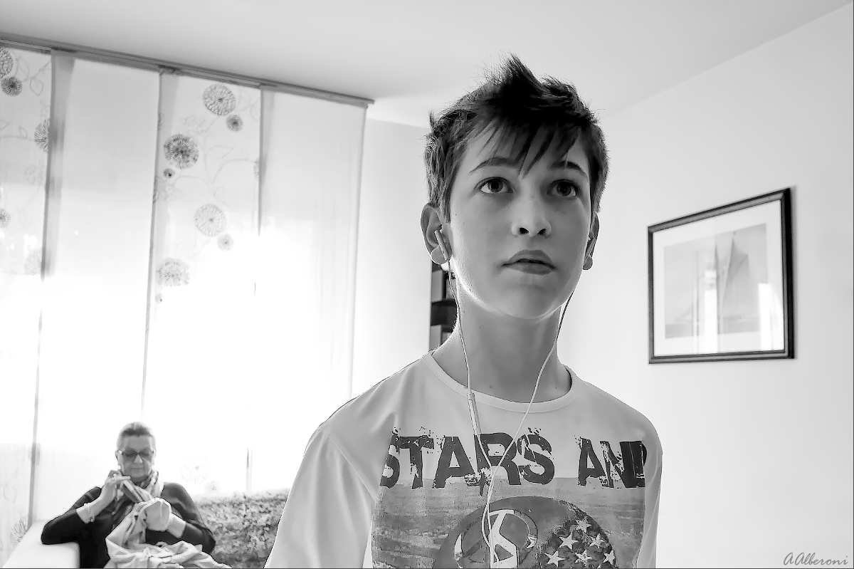 Mi piace l'espressione del ragazzo e il fatto che non guarda in camera. Trovo che il titolo non sia congruente con il focus dell'osservatore. Vedo qualcosa di strano sul filo delle cuffie e sul contorno della maglietta. _________________ F.