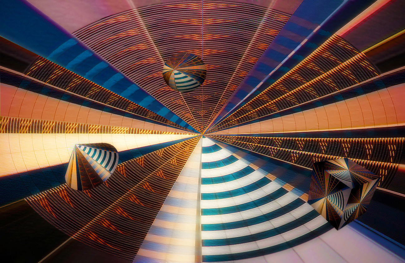 Invio la foto utilizzata (1) . Su questa ho utilizzato il filtro distorsione- coordinate polari-rettangolare a polare, sull' immagine ottenuta ho modificato i colori e resa più simmetrica. (2)