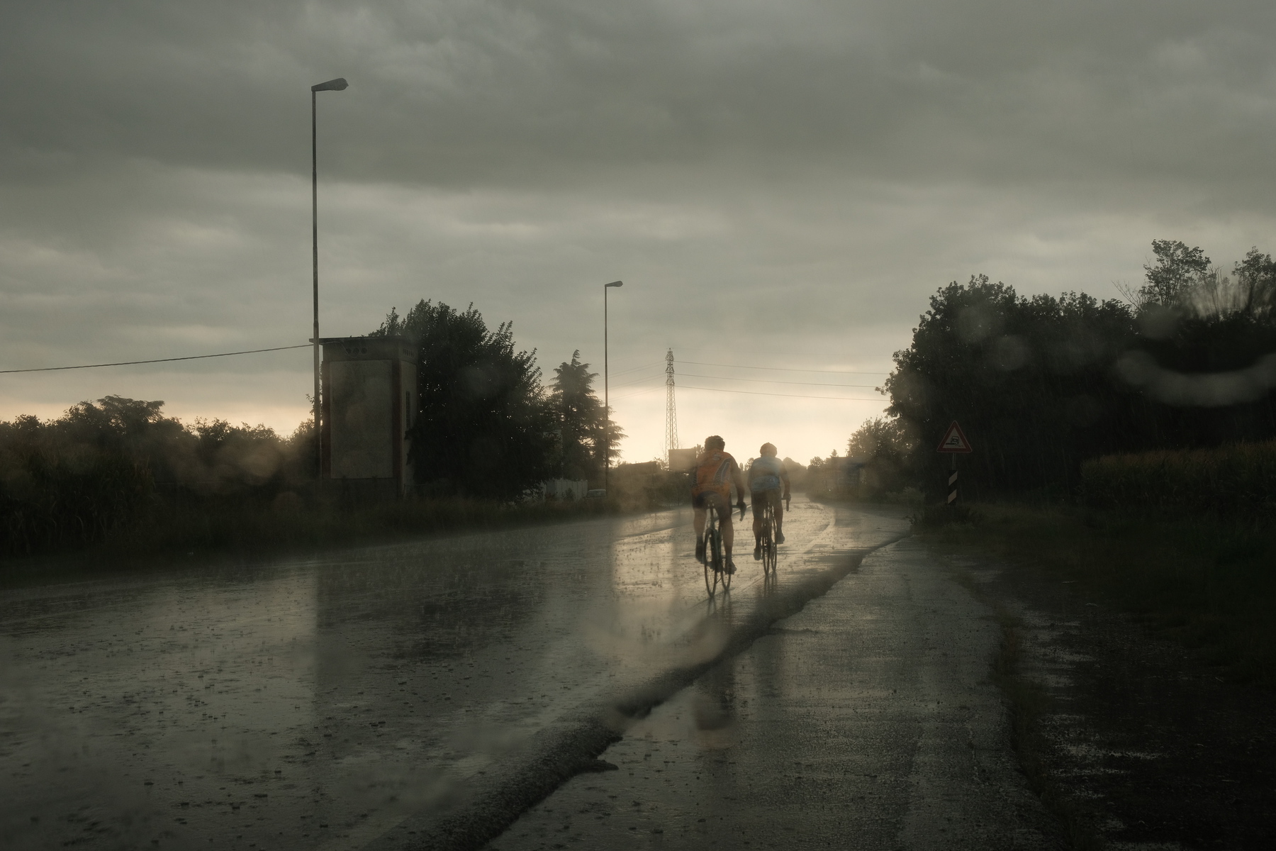 Bella cattura...mi piace molto l'atmosfera cupa con i due impavidi ciclisti.