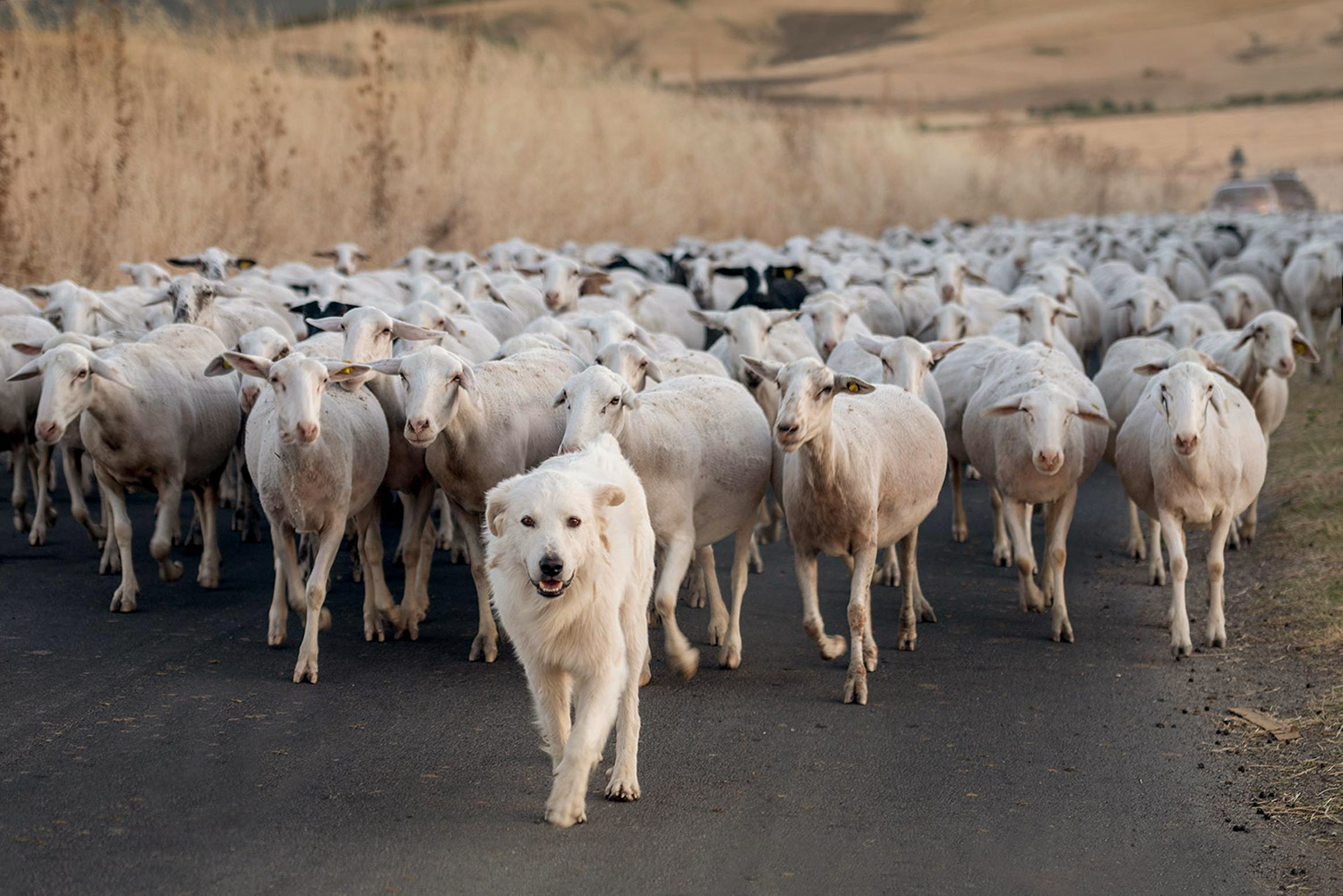 Sguardo dritto in camera e la fierezza tranquilla di saper fare bene il proprio lavoro. Quel cane è una star.