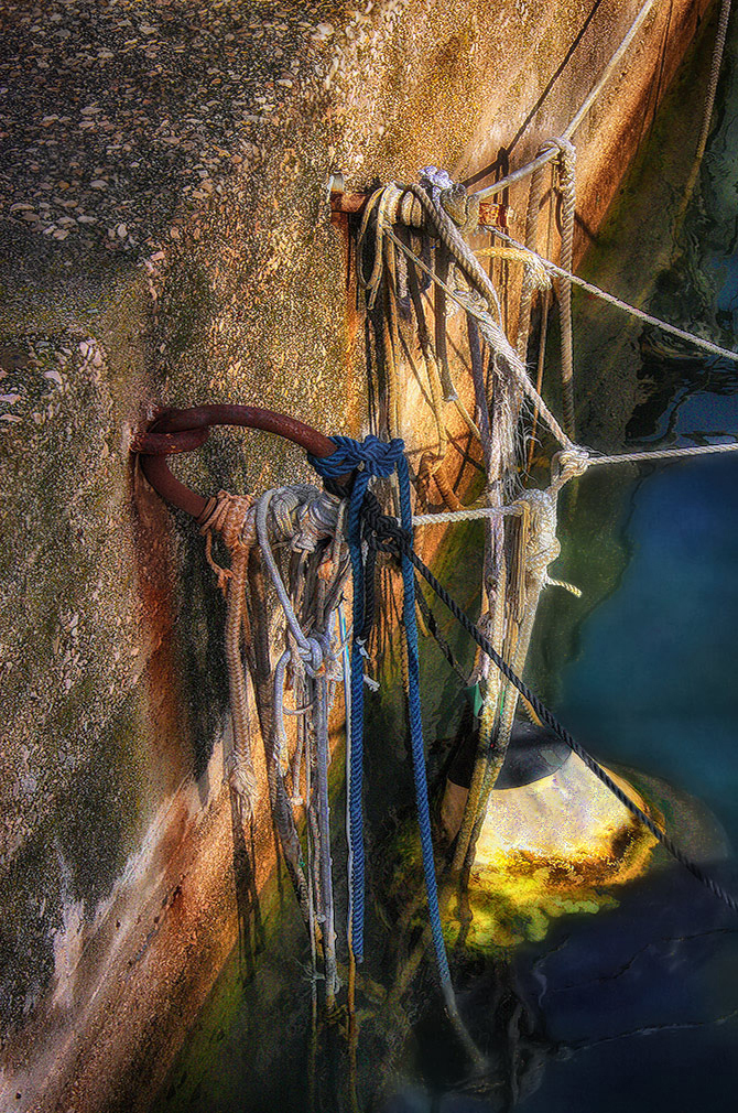 Ottima composizione e bella luce per questo repertorio di cime e nodi che potrebbero raccontare tante storie di mare.Alcuni nodi inestricabili:si è preferito tagliare la cima.Si,quando i nodi diventano difficili a sciogliere meglio un taglio netto altrimenti si resta al molo e non si danno mai le vele al vento.Questo è il momento di sciogliere nodi,tagliare legacci ed al comando antico "Date vela ventis!" riprendere il largo.Bella e significativa immagine. _________________ Sergio Demitri https://www.flickr.com/photos/124946035@N02/ |