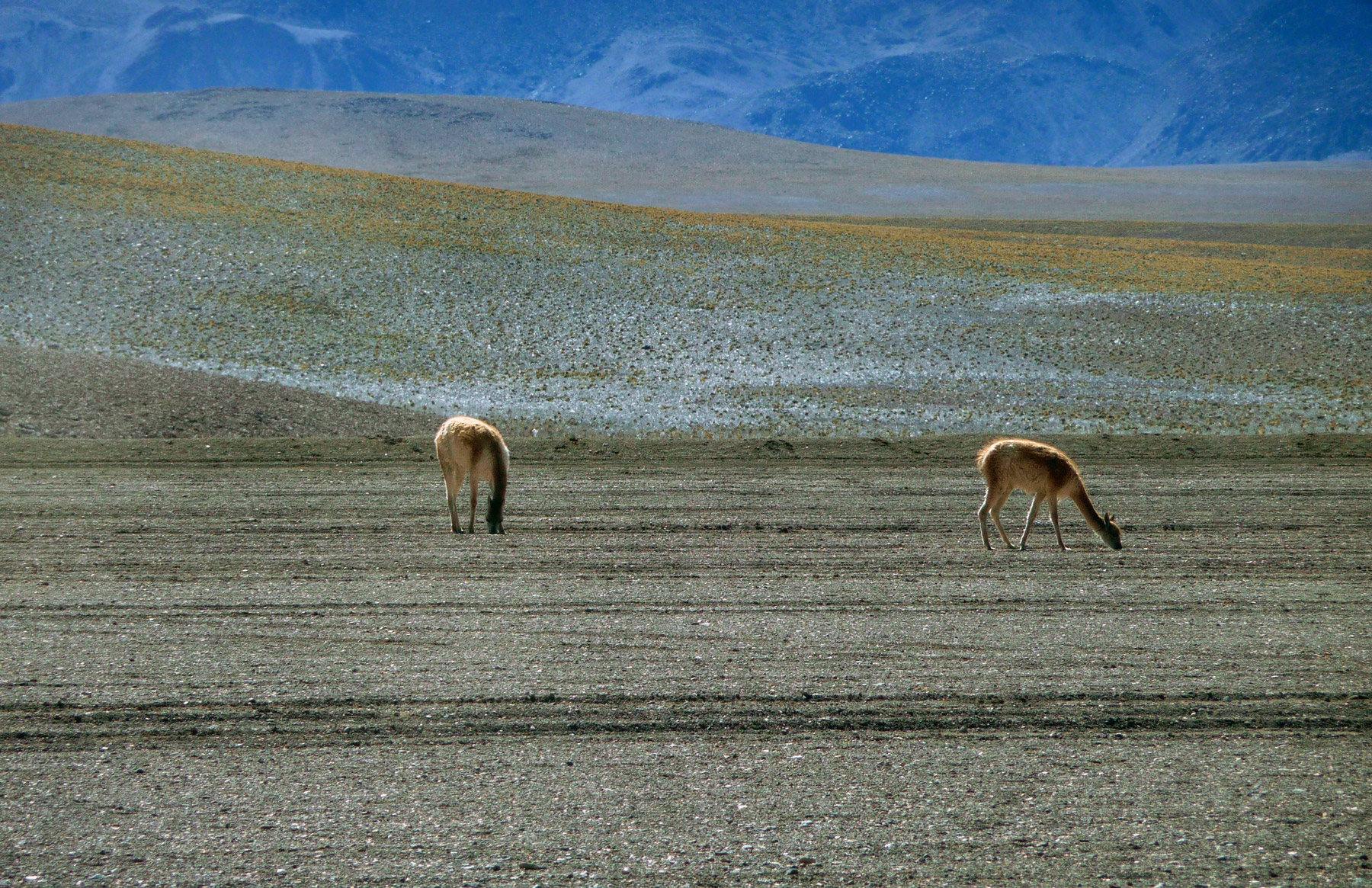 spazi desolati ed infiniti e le due vigogne che sembrano brucare sassi anziche' erba, ma immagino sia il loro habitat naturale.