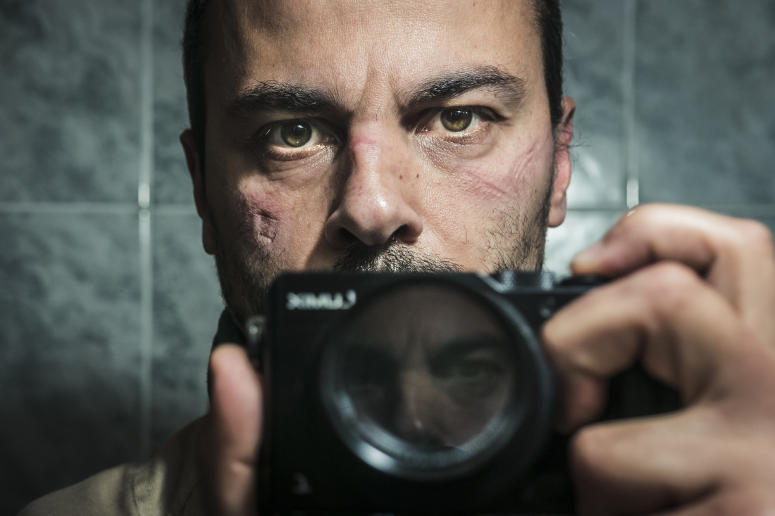 I segni sul viso, così rappresentativi di questi giorni così tribolati, il riflesso nel vetro dell'obiettivo, ma soprattutto il taglio così deciso, efficace, molto cinematografico.