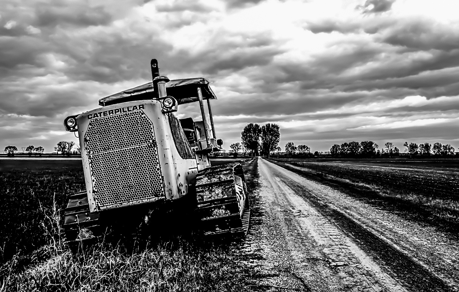 Bel b/n adatto alla scena e al trattore, quasi assomiglia a un mostro preistorico.