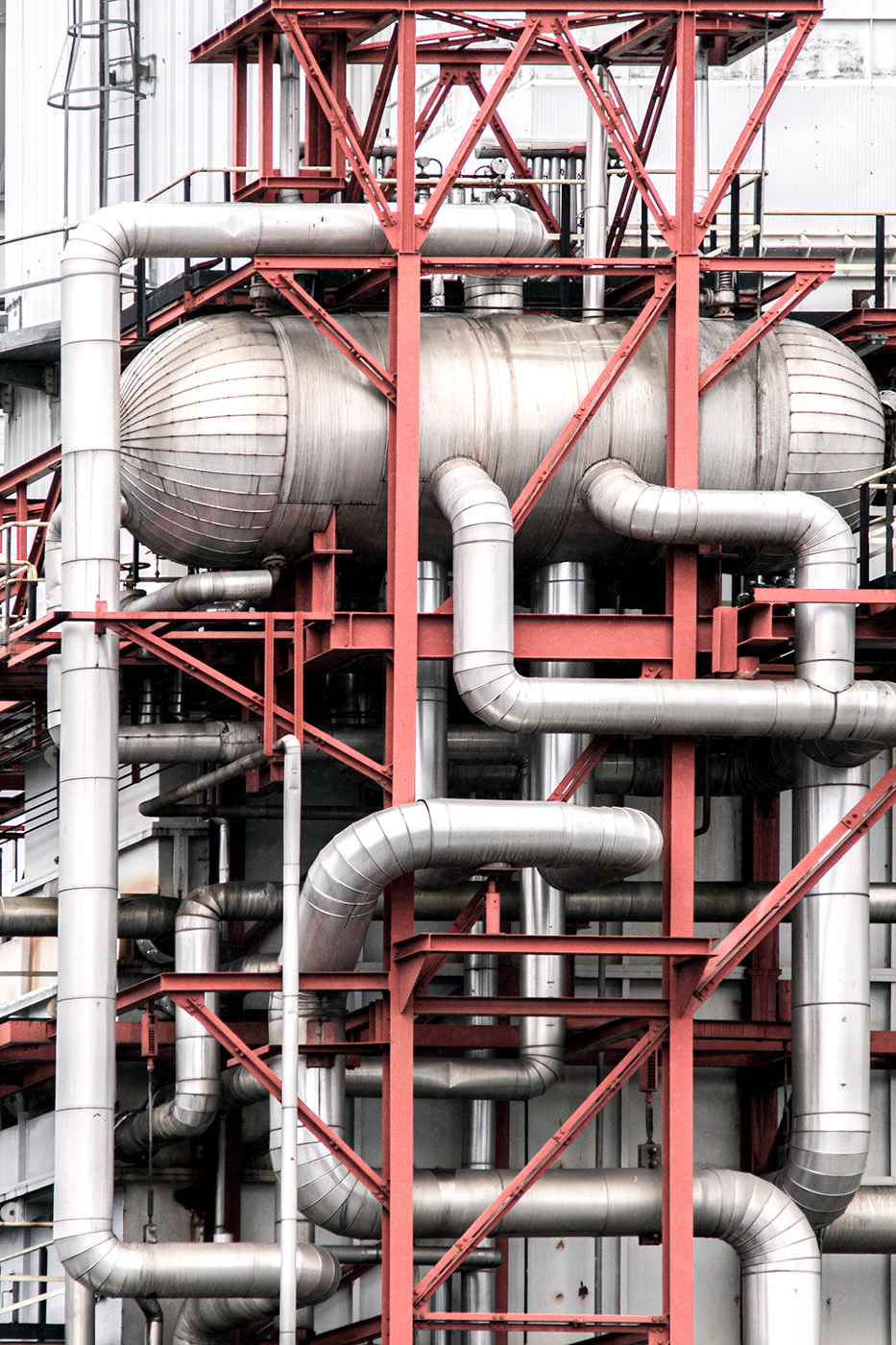 Bell'intreccio di tubi; forse starebbe bene anche in b/n con un bel contrasto.