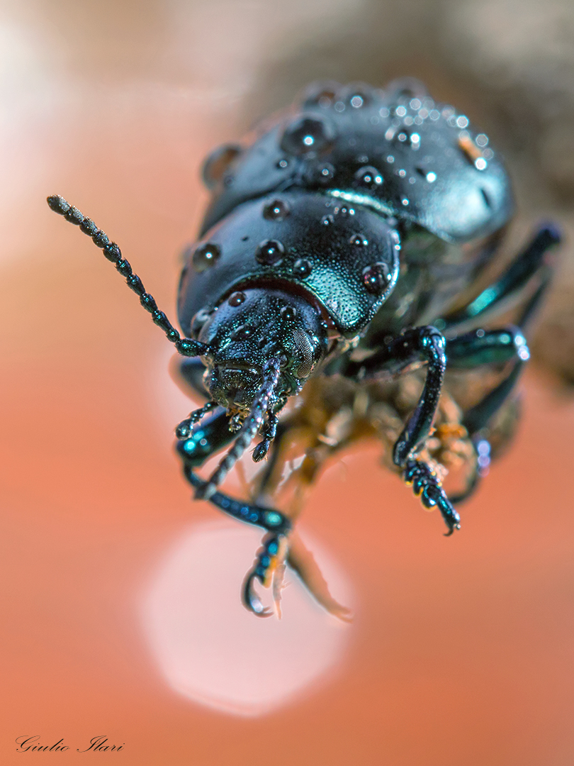 i coleotteri sono i più tosti a fotografare per via della "corazza" che riflette ogni particella di luce e se non la gestisci al meglio vengono fuori foto passabili. Qui c'è l'aggiunta delle gocce che sinceramente, saranno sceniche, ma riflettono ulteriormente la luce e comunque tolgono definizione.