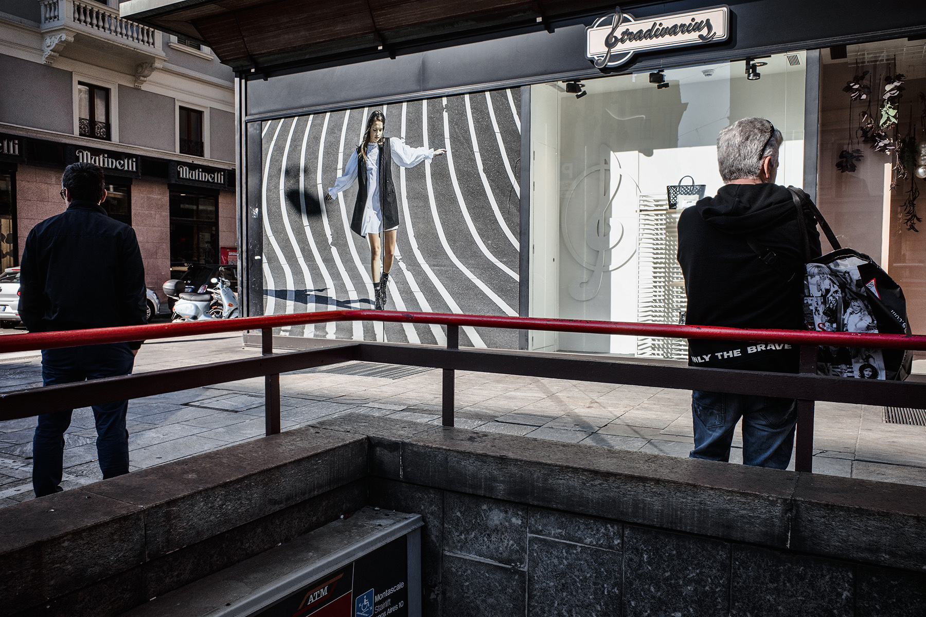 Scatto interessante ..vi propongo un'ulteriore lettura : non troncare la parte finale della scarpa , per fare arrivare la ragazza “in punta di piedi (e non richiamare l'attenzione degli uomini), nell'esatta congiunzione della riga bianca con la balaustra rossa.  _________________ Fermare nel tempo emozioni , per poi condividerle. Troppo poco il tempo da poter dedicare alla ns community |