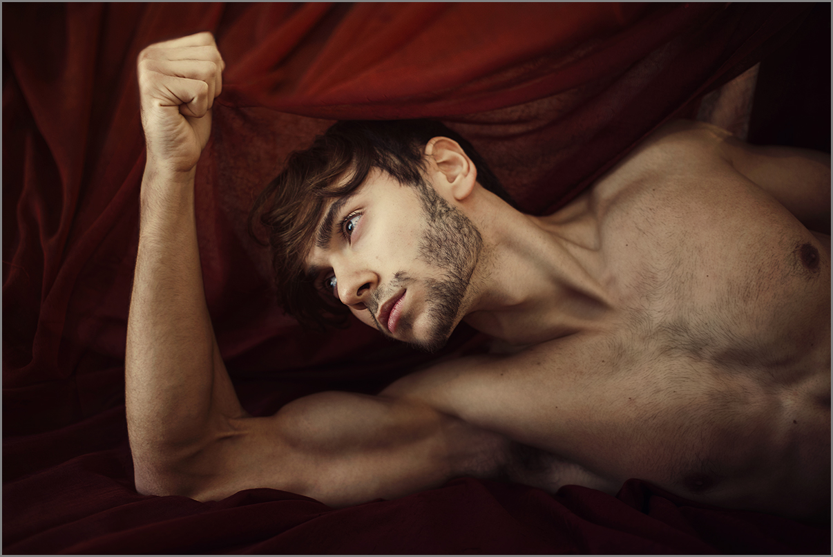 Una posa che con i muscoli del braccio in tensione crea un piacevole contrasto con la sua espressione più calma,dolce. Bello il colore del drappo, un rosso che è passione, intensità, un colore non casuale che aggiunge un qualcosa all' atmosfera, un pizzico di sensualità ed eleganza .C' è però qualcosa che non va sulla sua spalla Franco...un artefatto dovuto alla post . Ciao