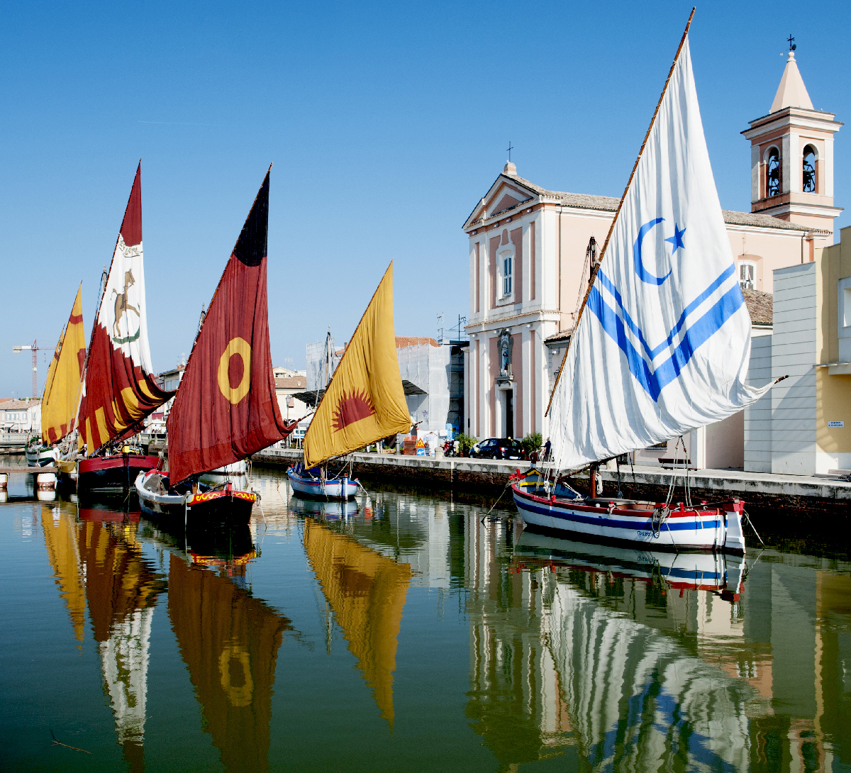 | Cesenatico il suo apporto canale ed il suo museo all'aperto delle sue storiche barche da pesca.. e di trasporto....bragozzo .....bragozzetto ...bragagna ...tartana...battana romagnola...ecc.... le stupende vele colorate non sono solo folclore.....ma sono identificazione ottica dei diversi proprietari...famiglie.. o luoghi. Cesenatico da visitare. Vi aspetto. |
